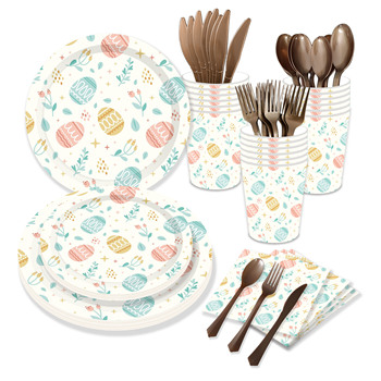 NEWELL paskalya parti malzemeleri Bunny ve yumurta temalı paskalya süslemeleri için tek kullanımlık kağıt tabak sofra seti